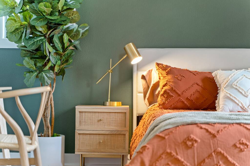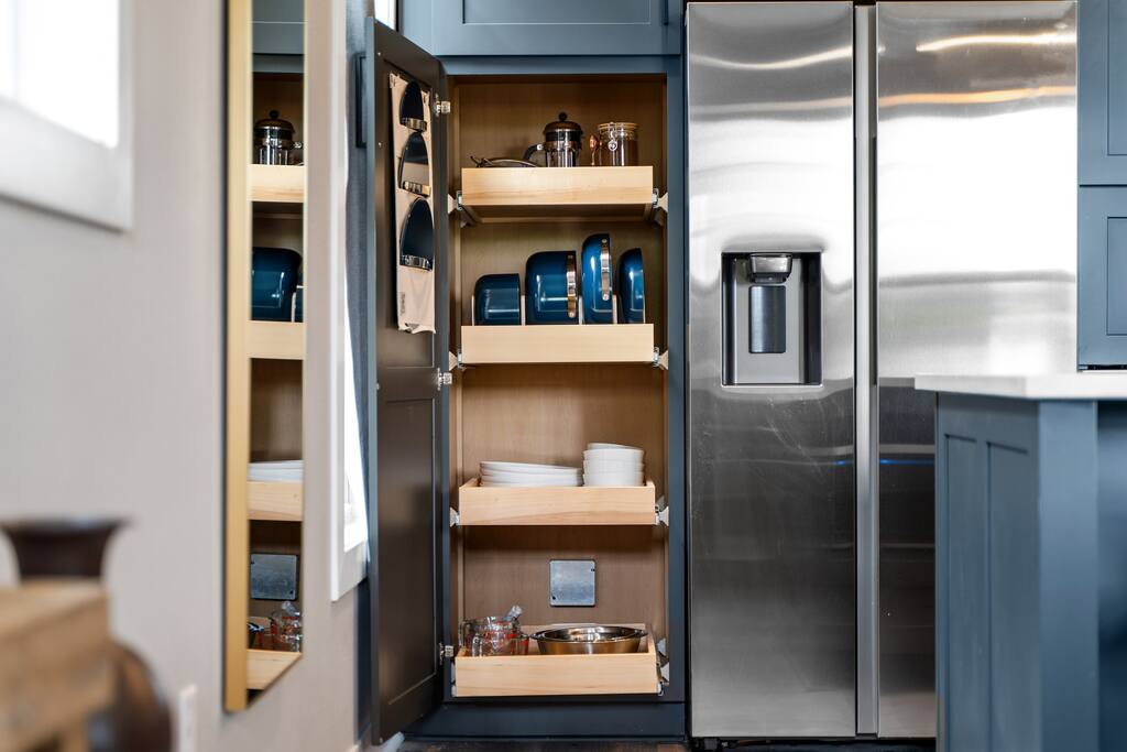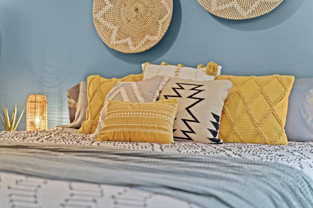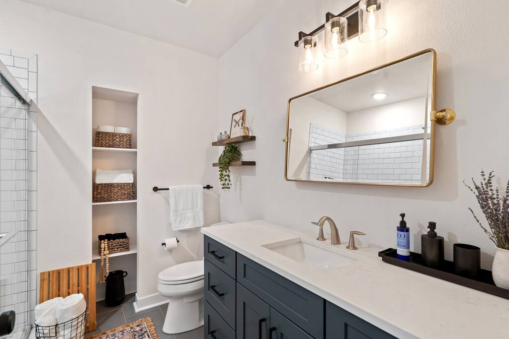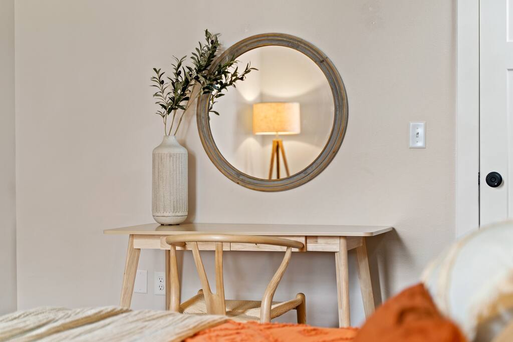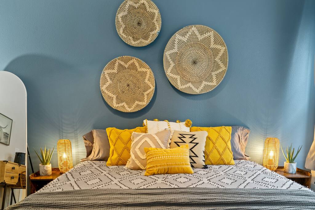 2 Bedrooms: This townhome can comfortably sleep up to 6 guests. - First Bedroom: King Bed and Twin Sized rollaway stored in the closet with fresh linens, pillows and blankets. - Second Bedroom: King Bed and Twin Sized rollaway stored in the closet with fresh linens, pillows and blankets. Kitchen/Living Room: • Open concept kitchen/living room provides ample space to hangout with friends and family, play board games, watch the 60” Smart TV, or cook meals in the full kitchen with stainless steel appliances and non-stick pans. Enjoy complimentary coffee/tea and fast Wi-Fi. Bathroom: • Full bathroom with fresh towels, hair dryer, toilet paper and complimentary body lotion/shampoo/conditioner/body wash. Washer/Dryer • There is a stacked washer/dryer with complimentary detergent. Private Backyard with Garage • Fenced-in backyard (shared) with private garage accessed via the back alley.