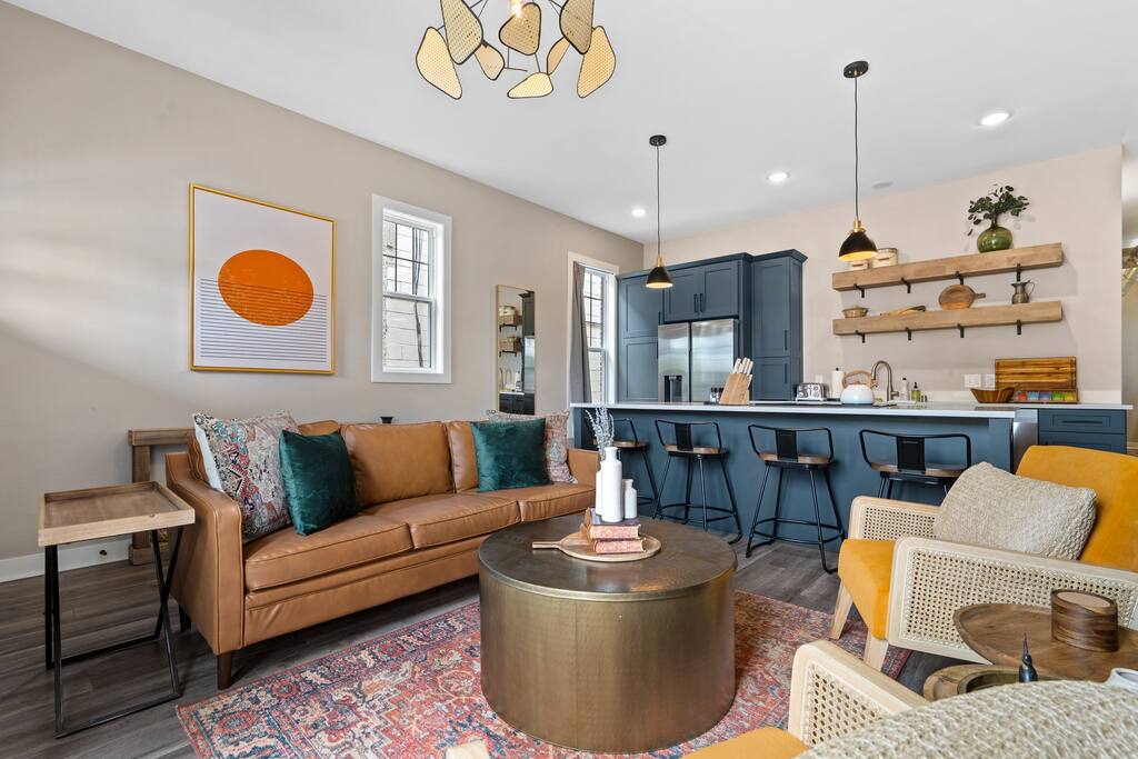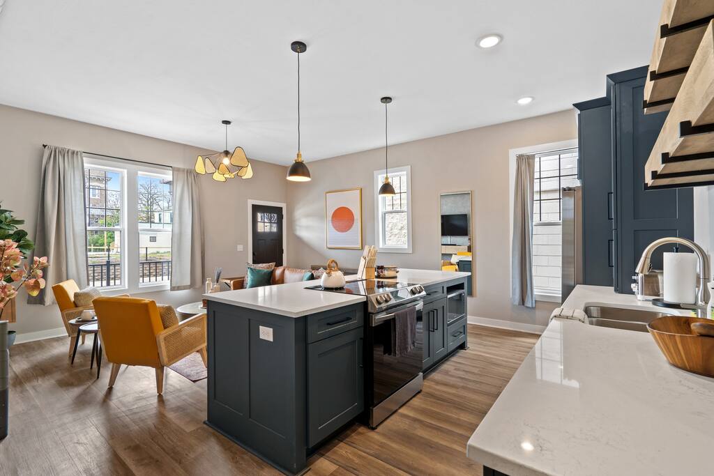 Welcome to The Bentley Hotel, a luxury selection of townhouses decorated with everyone in mind. We aim to provide a quality experience and memories that will last a lifetime. This townhome is finished with top of the line amenities including a 60” smart TV, board games, organic coffee and teas, a full kitchen with Caraway non-stick pans, workout mats, dumbbells and more. This is your new home away from home and the perfect place to gather whether you are in town for business or pleasure!