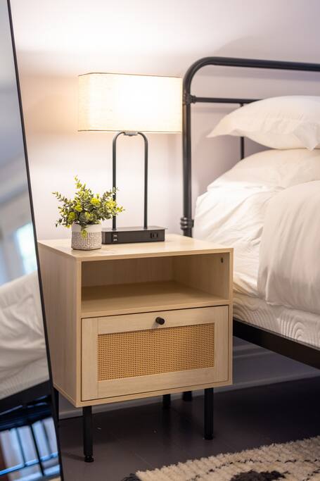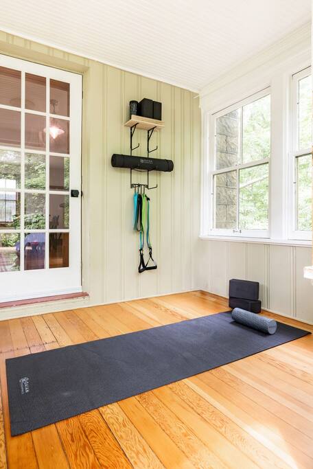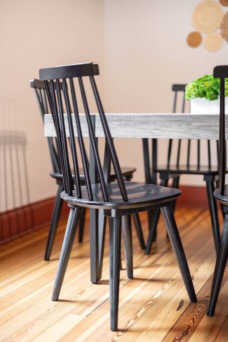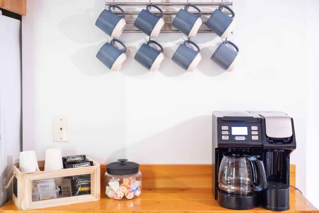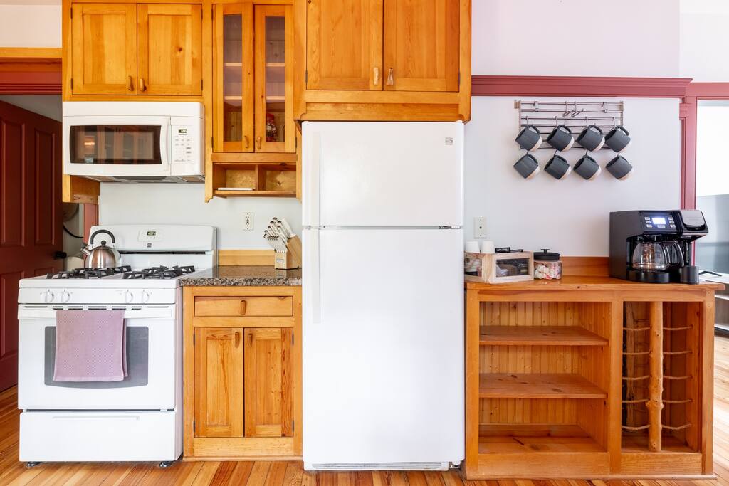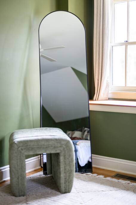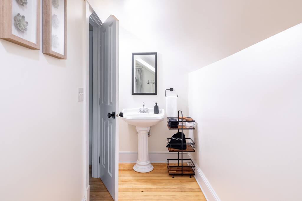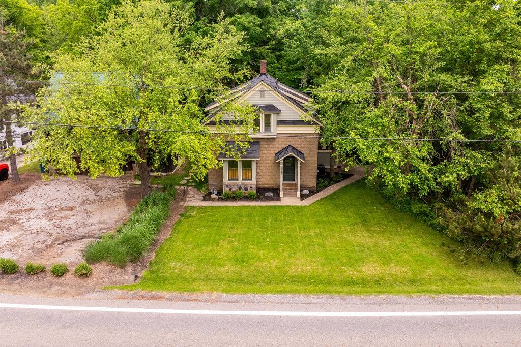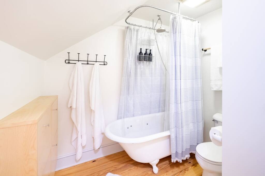 Enjoy the balance of nature and convenience in our home that will comfortably accommodate up to 6 guests. With serene wooded views from the hot tub and an on-property trail that leads to a waterfall view, our home is perfect for nature lovers or those looking for a relaxing escape. This home features three cozy bedrooms and one and a half bathrooms. The primary bedroom is complete with a plush king-size bed and a private balcony for morning coffee while the other two bedrooms are furnished with queen-sized beds. All bedrooms have blackout blinds, extra pillows and blankets, Roku TVs, and USB ports for your device charging. The fully stocked kitchen, including spices and cooking oil, is perfect for making home-cooked meals while the dining room has ample space to fit everyone. You’ll love lounging in the aesthetically designed living room playing games or watching Roku TV with your group. Finally, the three seasons room offers a beautiful spot for morning yoga, enjoying a nature view, or curling up with a book. Step outside and discover your private oasis. The hot tub and fire pit, overlooking a wooded area, set the scene for cozy evenings under the stars with six adirondack chairs. Roast marshmallows, share stories, and create lasting memories with loved ones. The outdoor gas grill is perfect for barbecue nights, and the spacious front yard provides ample room for yard games and outdoor activities. Please note that this is a historic home and there are some slanted ceilings on the second floor. It’s also located on a main road through the village. Short Term Rental Operator License: 2026-06