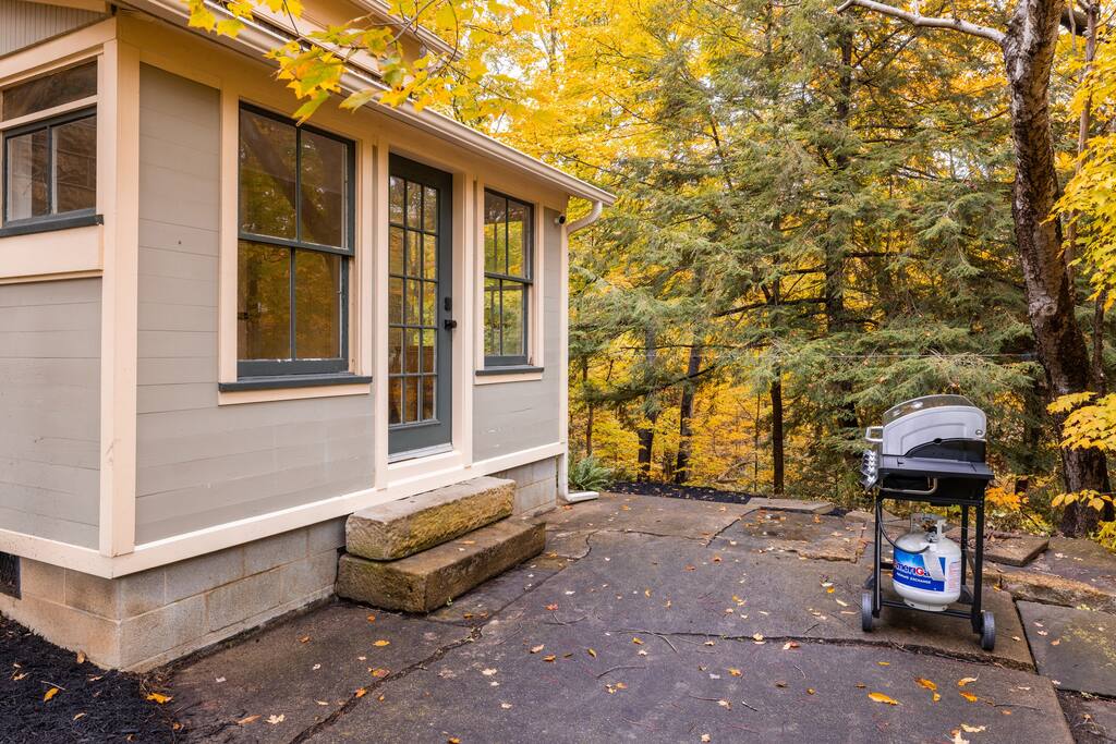Welcome to River Rock Retreat, a haven in the heart of Cuyahoga Valley National Park. Enjoy the hot tub with a nature view and explore the private trail leading to a stunning waterfall. Unwind by the outdoor fire pit, surrounded by bistro lights, and savor a barbecue with the gas grill. Walk to downtown Peninsula's coffee shop, dining, and shops, or trails in CVNP and the Cuyahoga Valley Scenic Railroad. A short drive brings you to Brandywine/Boston Mills Ski Resorts and Blossom Music Center.