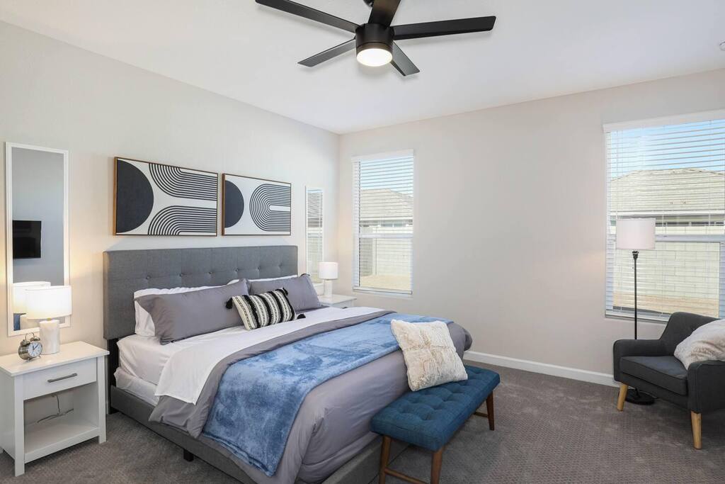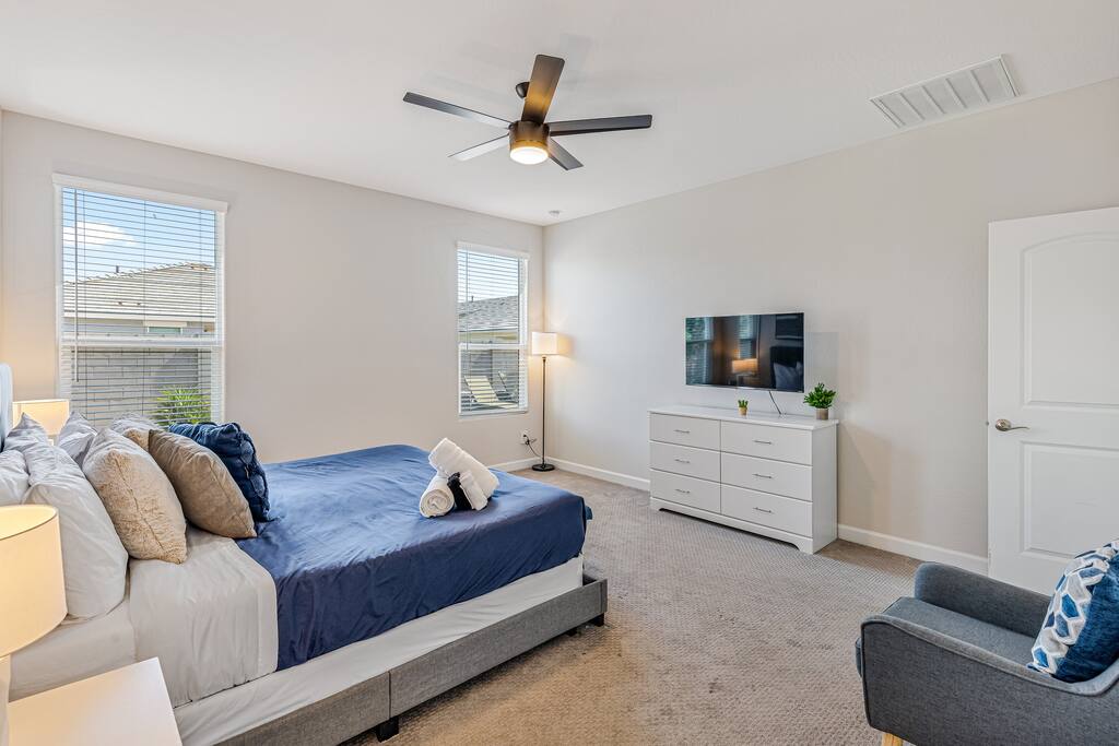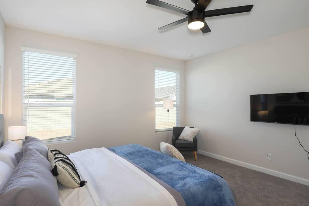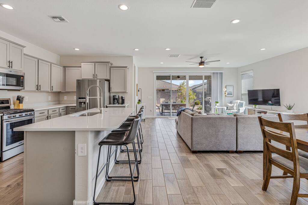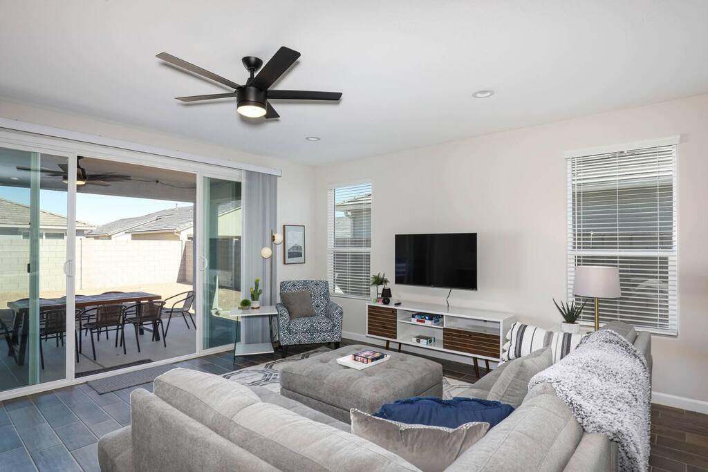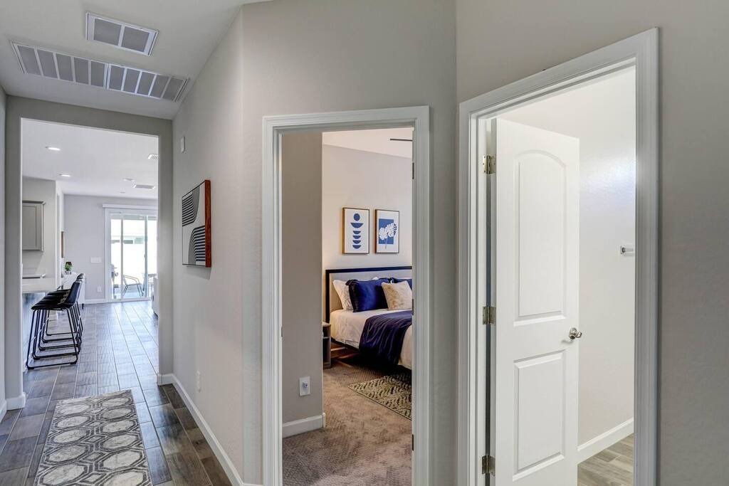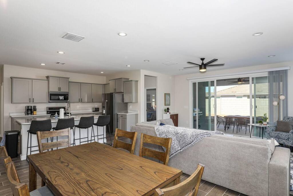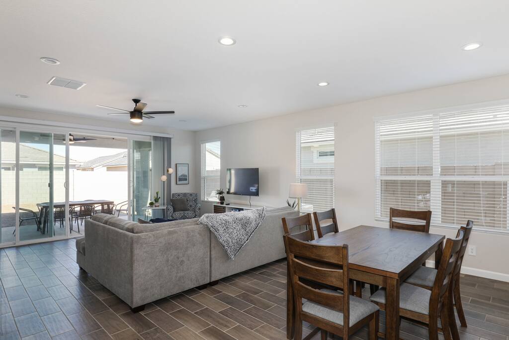 Easy access to the home is provided via newly paved streets in the Rancho Mirage community. Sidewalks are plentiful and you can easily walk to the nearby park and green outdoor space. Parking is convenient in the large driveway, the two car garage, or on the street. The Rancho Mirage neighborhood is a brand new development with all new homes. This neighborhood is conveniently located to downtown Maricopa and provides great access to sidewalks, play areas, and open outdoor spaces. The neighborhood is ideal for relaxing stays. PETS We allow up to 3 dogs for $90 per pet per stay. At the moment of booking, if you add you bring pets, Airbnb will add the first charge to the booking total, and we will request any additional ones. If you want to bring more than 3 dogs, please send us an inquiry, and we will approve on a case-to-case basis. GUEST RENTAL AGREEMENT, SECURITY HOLD (Which is not a security deposit and is allowable on Airbnb), & ID VERIFICATION REQUIRED Hi! We are your welcoming hosts and we look forward to hosting you. This place is extraordinary and does require guests to complete a Guest Rental Agreement, ID verification, and Security Hold (which is not a security deposit and is allowable on Airbnb) in order to receive Arrival Instructions. Details of the Guest Rental Agreement can be found in the House Rules. CANCELATION POLICY: The cancelation policy, and how it will apply to your trip, will be clearly shown in the page “Confirm and Pay” prior to completing your reservation. We highly suggest you read the cancelation policy, which applies for both cancelations, and change of dates. In that same page you’ll have the option to add trip insurance, which we always recommend!