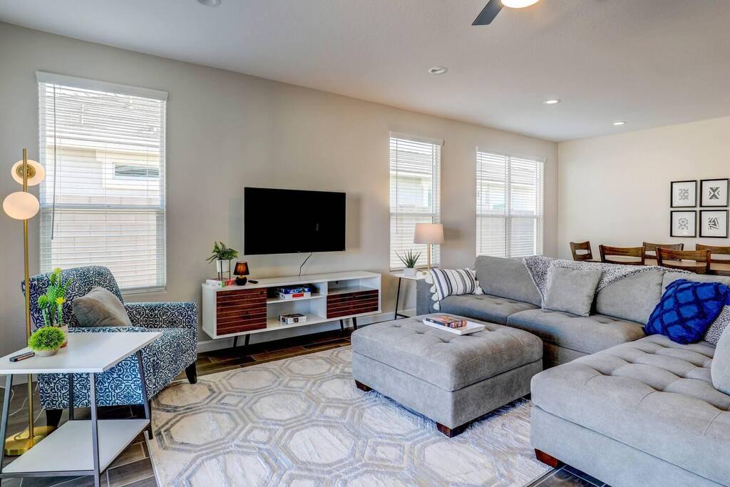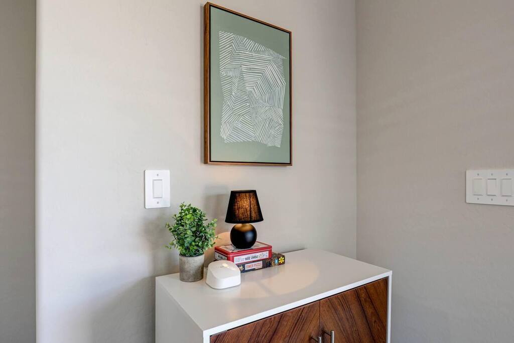 Hi! We are your welcoming hosts and we look forward to hosting you. We created the following set of rules and guidelines to make both your guest and our hosting experience a great one! –Guest Expectations– You are required to have a working phone number to avoid the reservation from being canceled. You agree that you are booking in goodwill with your host and that you will not attempt to damage your host's business because you are unhappy with the ruling by the platform or the host if you experience anything dissatisfying in regards to your stay or if you lose resolution. Please don’t wear shoes in the house. –Occupancy– You must accurately disclose how many adults and children will occupy said leased premises in your booking through the online platform. If you plan to have visitors exceeding the maximum number already allowed, it may be allowed between 10 am and 10 pm. Please communicate with us. Minimum Age Requirement: you must be at least 23 years old to book this property. –Check-In– This is a self-check-in property. Please reach out if you have any questions, but do not reach out to neighbors. For early check-in, send an inquiry. –Check Out– You must be fully checked out from the property by the advertised time on the listing unless authorized otherwise. Failing to check out at the scheduled time will result in additional charges incurred, including extra time invoiced by our cleaning staff, as well as any compensation to incoming guests if their check-in time is impacted due to your failure to depart on time. –Smoking– NO SMOKING or Vaping of any kind will take place inside the property. Violation of this will result in a $500 charge. If you smoke outside, please make sure to clean butts and ashes. –Drugs– Illegal drugs are not allowed in the property and may result in removal of the property, and involving the authorities if necessary. –Firearms– According to Airbnb article 1529 regarding Rules concerning weapons, guests bringing a firearm should disclose it to hosts. –Party / Celebration– Parties are strictly prohibited and there is a $1,000 fine, in addition to the expenses incurred to additional cleaning or items broken/missing. You’ll also be required to vacate the premises immediately. Glitter, confetti, fireworks, and Pinatas are prohibited both inside and outside the unit. Fireworks of any kind are strictly prohibited on the property. Failure to comply will result in a $1000 fine. –Quiet Hours– Quiet hours are 10 pm-10 am. You will receive one warning if we are notified of excessive noise, then will be fined $50 and/or asked to leave the property without a refund if we must warn you again. –Monitoring Devices– Monitoring of the unit is for both your and our safety. We may use decibel sensors, ring doorbells, and smart sensors to detect tobacco and/or marijuana. Tampering, disabling, or destroying monitoring devices will be fined $100, the cost of the device if damaged, and/or asked to leave immediately without a refund. –Maintenance– We handle maintenance issues as quickly as we can. In many cases, we have a short window of time since we are notified of an issue and your arrival time. If we need to access the premises to take care of any issues we will notify you as soon as we can. A $500 charge will apply if maintenance is denied entry to fix an urgent issue. Lawn Mowing, pest control, or other scheduled routine controls may happen during your stay. We will notify you in advance. –Cancellations– The cancellation policy is available for you before confirming the reservation. Once the reservation has been confirmed, it is assumed you acknowledge the cancellation policy. We recommend you purchase travel insurance to cover any losses due to cancellations. Change of dates follows the cancelation policy. –Failing to comply House rule violations are grounds for immediate termination of the reservation without a refund We assess the cost of losing the next guest's reservation if this is the result of a house rule violation. –Pet Policy– Pets are not allowed on this property. Undisclosed pets will be charged a $500 fee. -Amenities/Appliances- In the event that any amenity or appliance is not functioning before your arrival, we will make every effort to notify you immediately and resolve the issue as soon as possible. If you decide to stay despite any issues, please be aware that you are accepting the amenities provided during your stay.