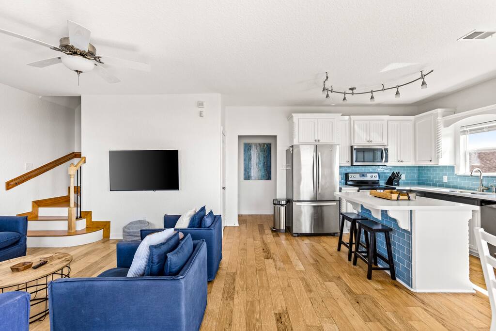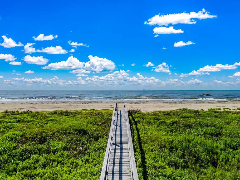 Nestled in the quiet coastal town of Surfside Beach, Texas, this home combines a laid-back vibe with easy access to activities. Walk straight onto the beach, or explore nearby spots like Surfside Jetty Park for fishing and dolphin watching. Families will love birding trails, kayaking in Christmas Bay, or visiting the Brazoria National Wildlife Refuge. Within 5 minutes you’ll find casual seafood restaurants, beach bars, and local shops. For a bigger adventure, drive 45 minutes to Galveston for attractions and nightlife, or 1.5 hours to Houston for day trips.