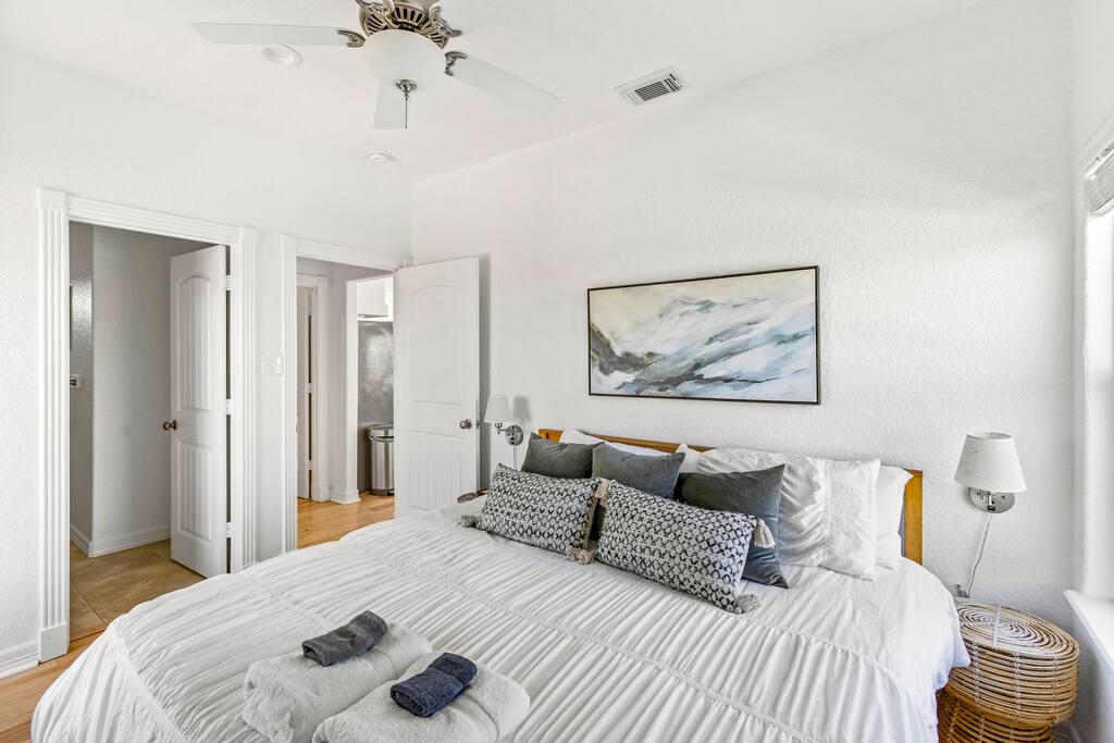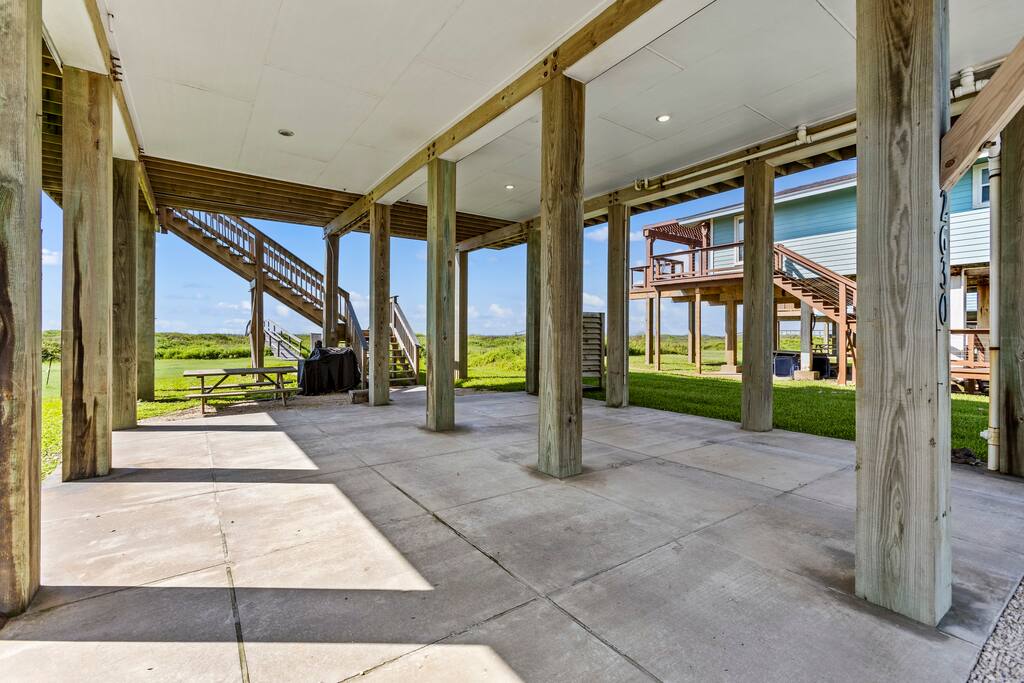 A car is highly recommended to enjoy Surfside and beyond. The home has free on-site parking for 2–3 cars, plus street parking nearby. The nearest airports are Houston Hobby (HOU, ~1 hour) and George Bush Intercontinental (IAH, ~1.5 hours). Groceries and major shops are just 15–20 minutes away in Lake Jackson and Freeport. Surfside itself is small and bike-friendly, but rideshare and taxi options are very limited—plan on driving if you want to explore Galveston or Houston.