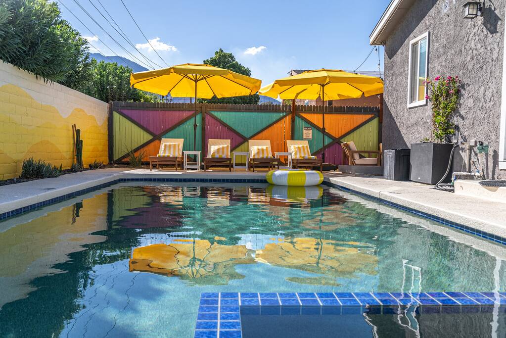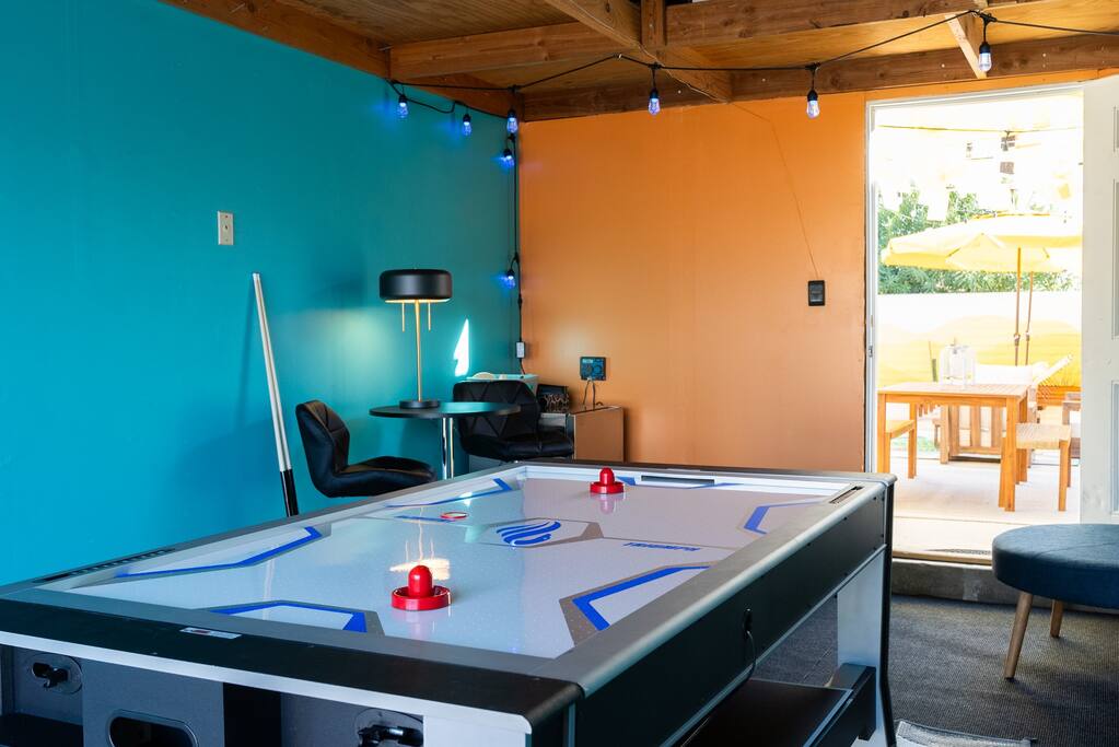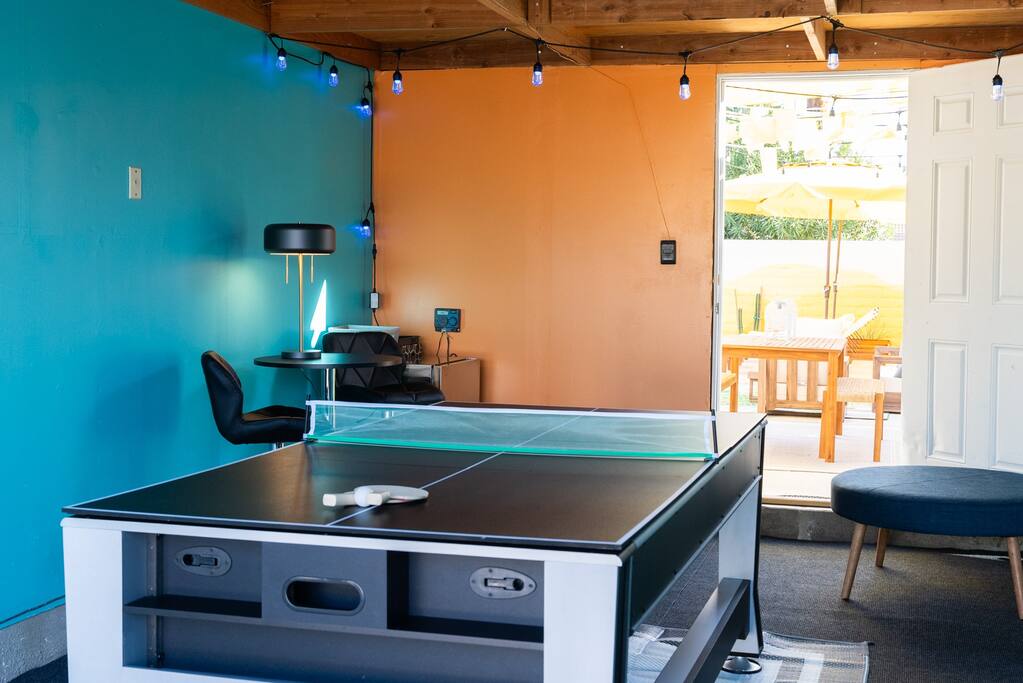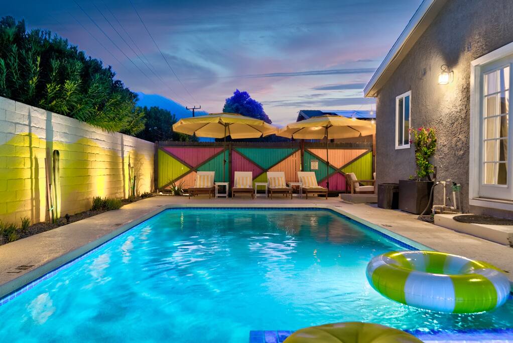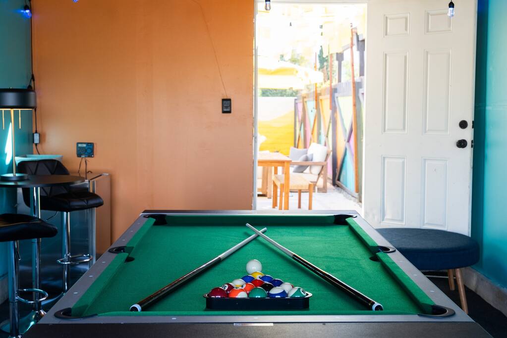 PARKING The garage is used as a game room and is not accessible for car parking. There is a driveway and street parking. POOL HEATING The pool can be heated for an additional $75/day during your stay, and must be heated for the entire stay. HEATING AND COOLING The heating and cooling is managed by the host remotely. Please be courtesy and don't leave windows/doors open when the heat & A/C are on. DINING ROOM DOOR The dining room sliding door can be tricky to close. To latch the door please use both hands and forcefully push the door shut. Please use the locking safety bar provided if you cannot get the door completely closed and latched. BACKYARD One side of the backyard shares a fence with the neighbors. PETS We allow up to 3 dogs for $90 per pet per stay. At the moment of booking, if you add you bring pets, Airbnb will add the first charge to the booking total, and we will request any additional ones. If you want to bring more than 3 dogs, please send us an inquiry, and we will approve on a case-to-case basis. Per California law - all pets must remain on a leash when outside. Pet waste bags are provided and are to be used - a $50 waste pick-up will be charged if you do not clean up after your pet. DISCOUNTS We run last-minute bookings, midweek specials, and long-stay discounts. GUEST RENTAL AGREEMENT, SECURITY HOLD (Which is not a security deposit and is allowable on Airbnb), & ID VERIFICATION REQUIRED Hi! We are your welcoming hosts and we look forward to hosting you. This place is extraordinary and does require guests to complete a Guest Rental Agreement, ID verification, and Security Hold in order to receive Arrival Instructions. Details of the Guest Rental Agreement can be found in the House Rules. CANCELATION POLICY: The cancelation policy, and how it will apply to your trip, will be clearly shown in the page “Confirm and Pay” prior to completing your reservation. We highly suggest you read the cancelation policy, which applies for both cancelations, and change of dates. In that same page you’ll have the option to add trip insurance, which we always recommend!