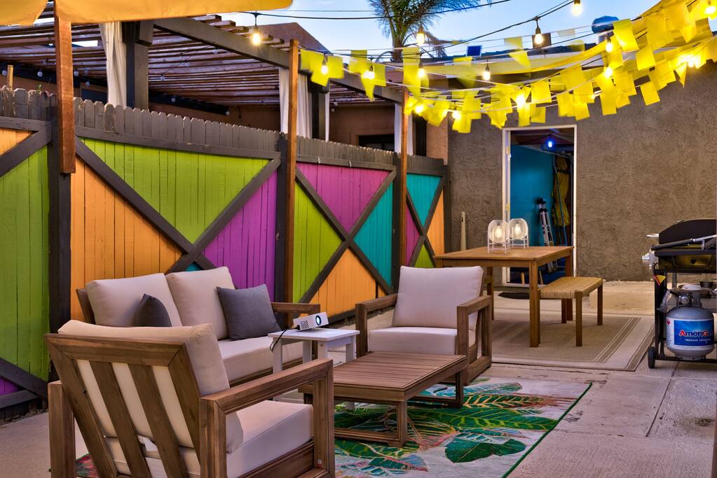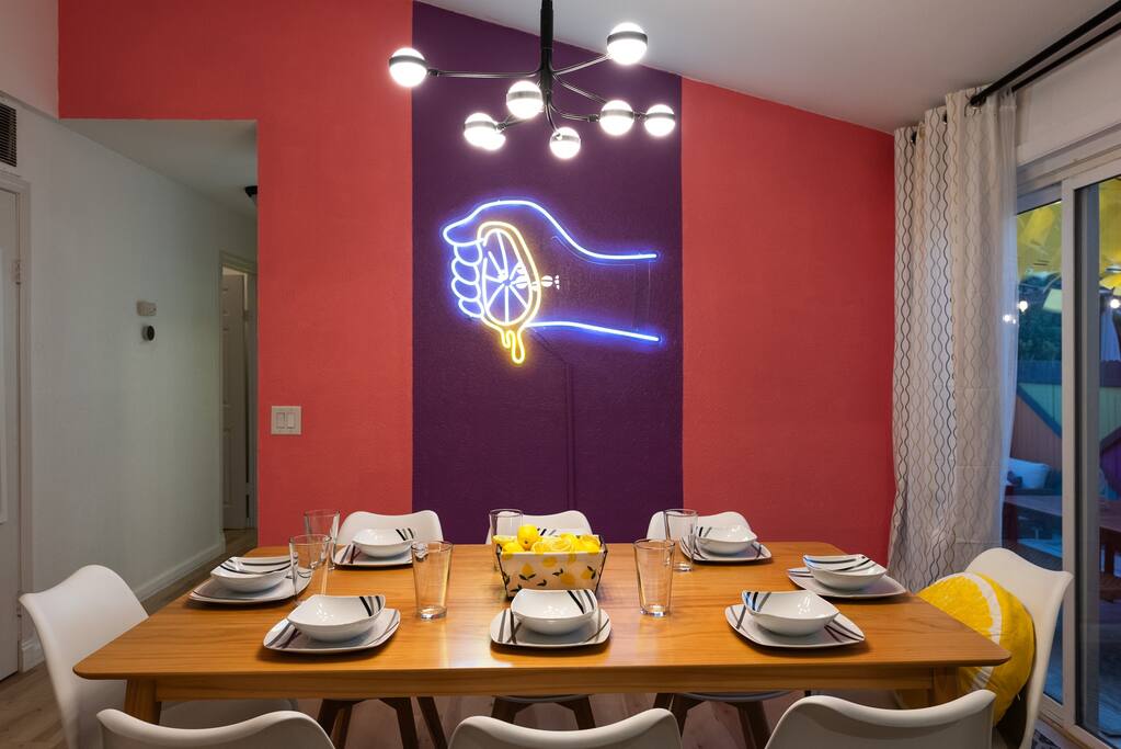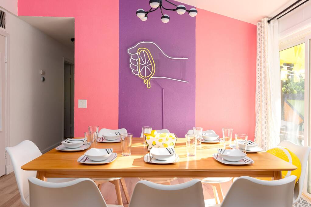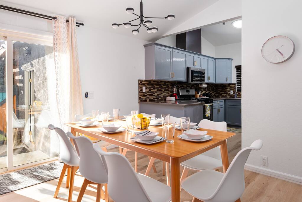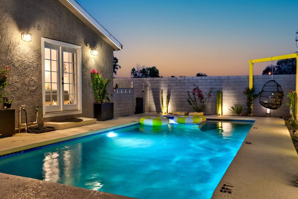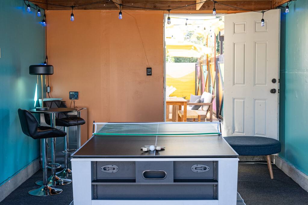 PARKING The garage is used as a game room and is not accessible for car parking. There is a driveway and street parking. POOL HEATING The pool can be heated for an additional $75/day during your stay, and must be heated for the entire stay. HEATING AND COOLING The heating and cooling is managed by the host remotely. Please be courtesy and don't leave windows/doors open when the heat & A/C are on. DINING ROOM DOOR The dining room sliding door can be tricky to close. To latch the door please use both hands and forcefully push the door shut. Please use the locking safety bar provided if you cannot get the door completely closed and latched. BACKYARD One side of the backyard shares a fence with the neighbors. PETS We allow up to 3 dogs for $90 per pet per stay. At the moment of booking, if you add you bring pets, Airbnb will add the first charge to the booking total, and we will request any additional ones. If you want to bring more than 3 dogs, please send us an inquiry, and we will approve on a case-to-case basis. Per California law - all pets must remain on a leash when outside. Pet waste bags are provided and are to be used - a $50 waste pick-up will be charged if you do not clean up after your pet. DISCOUNTS We run last-minute bookings, midweek specials, and long-stay discounts. GUEST RENTAL AGREEMENT, SECURITY HOLD (Which is not a security deposit and is allowable on Airbnb), & ID VERIFICATION REQUIRED Hi! We are your welcoming hosts and we look forward to hosting you. This place is extraordinary and does require guests to complete a Guest Rental Agreement, ID verification, and Security Hold in order to receive Arrival Instructions. Details of the Guest Rental Agreement can be found in the House Rules. CANCELATION POLICY: The cancelation policy, and how it will apply to your trip, will be clearly shown in the page “Confirm and Pay” prior to completing your reservation. We highly suggest you read the cancelation policy, which applies for both cancelations, and change of dates. In that same page you’ll have the option to add trip insurance, which we always recommend!